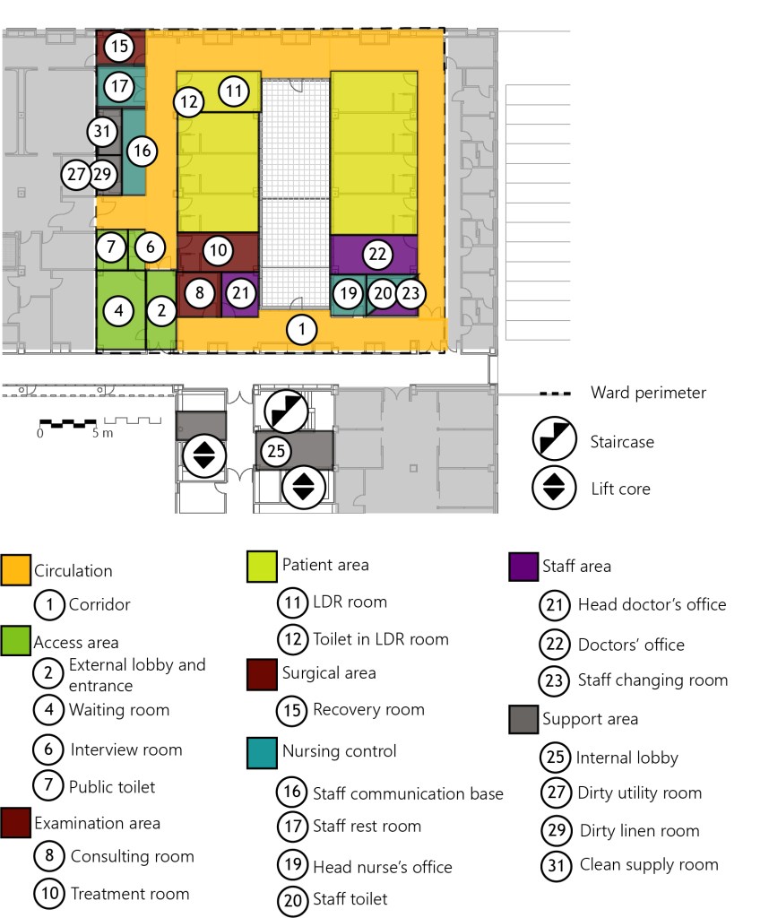 El bloque obstétrico del Hospital Universitario del Vinalopó (HUV) fue evaluado con la herramienta de la tesis doctoral CURARQ-Pari. La toma de datos se realizó en febrero de 2018.