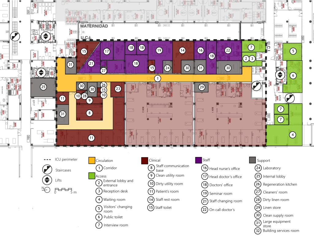 La unidad de cuidados intensivos (UCI) del Hospital Universitari i Politècnic La Fe (HUPF) fue evaluada con la herramienta de la tesis doctoral CURARQ-UCI. La toma de datos se realizó en enero de 2018.